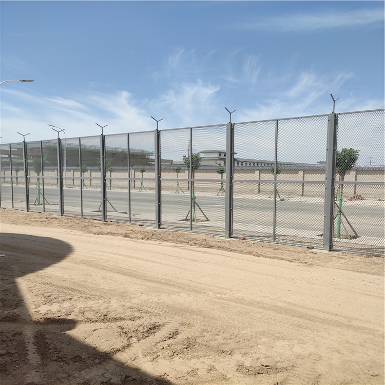 6、監(jiān)獄警戒區(qū)防護(hù)網(wǎng)在施工時(shí),每間隔一定距離(通常為120米)應(yīng)將網(wǎng)墻立柱做一次雙柱分段隔離,雙柱間隙不大于10mm。網(wǎng)墻拐角處和分段處的兩根立柱應(yīng)預(yù)制連體底座,連體底座的體積應(yīng)為單體底座的兩倍。