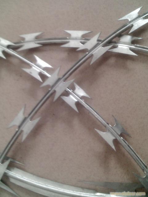 刀片刺絲網(wǎng)是一種新型防護網(wǎng),該產(chǎn)品具有防阻效果好。美觀,施工便利,經(jīng)濟實用等優(yōu)異特點。主要用于園林公寓,機關單位,監(jiān)獄哨所,邊防等圈禁防護。