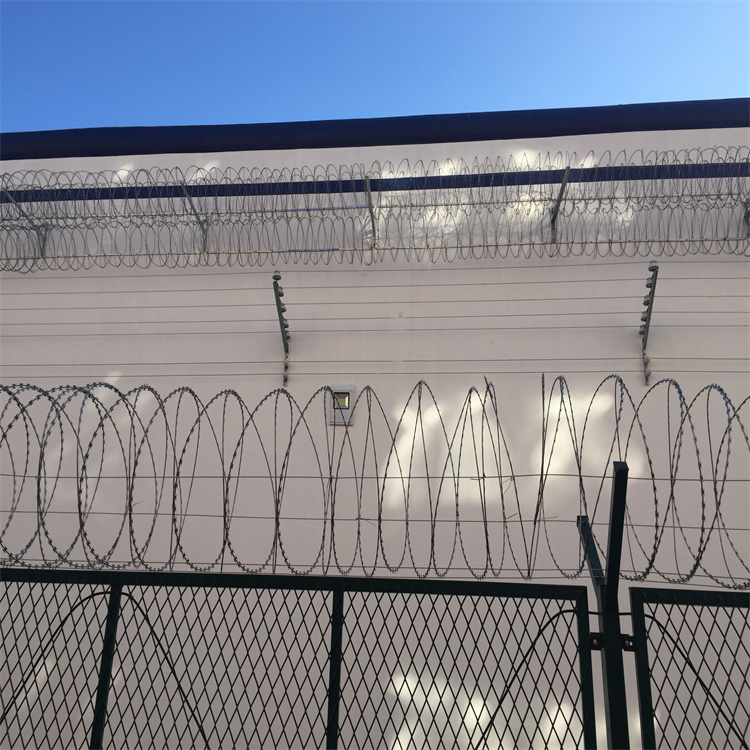 高鐵專(zhuān)用刺絲滾籠安裝方法;廣泛應(yīng)用于住宅區(qū),重要倉(cāng)庫(kù),工廠,邊防軍事場(chǎng)所等需要封鎖的場(chǎng)所。在打開(kāi)之后,每個(gè)交叉圓的安裝距離為20厘米,直徑不小于45厘米。與立柱平放,埋在地下不小于0.3m,并且刺絲滾籠由0.5mm厚的Q195鋼板制成。支架放置在保護(hù)柱和中間跨度,跨越3米,另一個(gè)跨度僅放置在立柱的上部。安裝間距為20厘米,環(huán)直徑不小于45厘米。兩個(gè)支架的高度一般為730mm,上側(cè)有兩個(gè)掛鉤。加密支架重約1.73千克,厚度為2毫米。刺絲滾籠的跨度僅放置在柱的上部。刺絲滾籠是熱浸鍍鋅的。鍍鋅量通常為120g/m 2。 8毫米直徑夾具形狀是專(zhuān)門(mén)設(shè)計(jì)的螺母和防盜墊圈。外圍加工應(yīng)美觀,具有良好的實(shí)用。