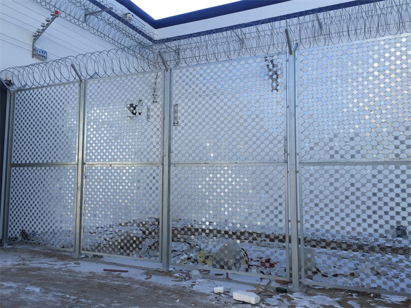 監(jiān)獄梅花刺隔離網(wǎng)又叫沖壓刺隔離網(wǎng)、太陽(yáng)花刺片隔離網(wǎng),行業(yè)內(nèi)簡(jiǎn)稱梅花刺網(wǎng)。其特點(diǎn)為堅(jiān)固牢靠、防止攀爬等。梅花刺隔離網(wǎng)一般用于監(jiān)獄大門(mén),探監(jiān)門(mén),人員通道兩邊的隔離網(wǎng),由于其成本造價(jià)高,所以還沒(méi)有廣泛替代焊接式隔離網(wǎng)。