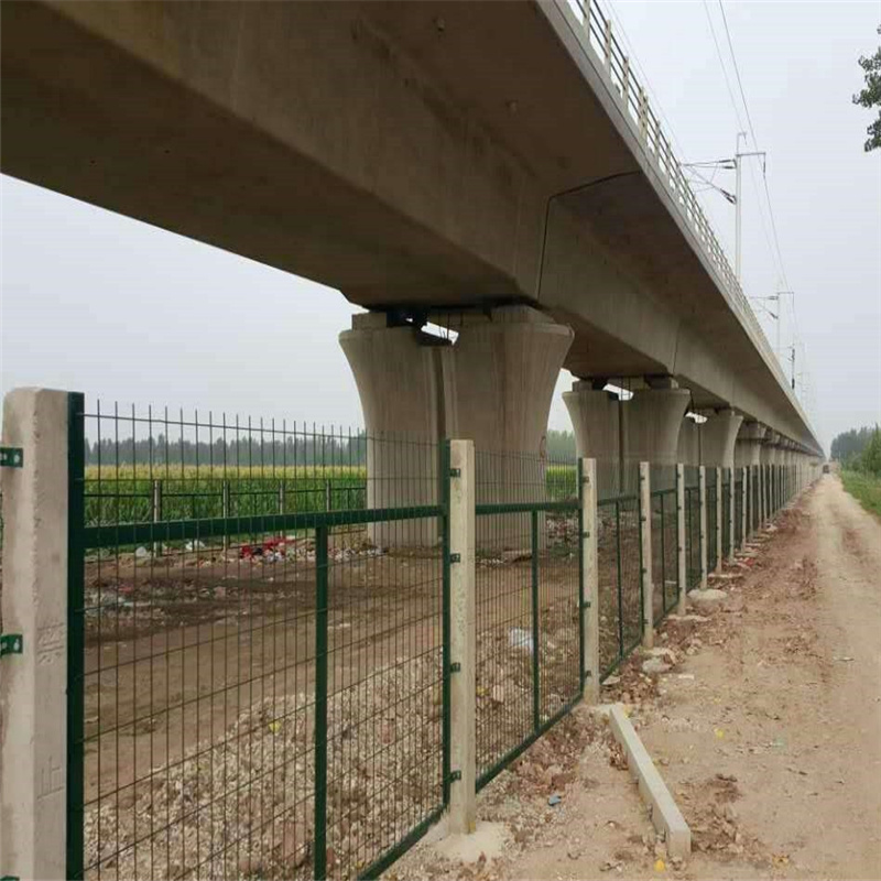 鐵路防護(hù)欄 鐵路防護(hù)圍欄 高速鐵路護(hù)欄網(wǎng)用于鐵路兩側(cè)的隔離防護(hù)設(shè)施起隔離和防護(hù)的作用的護(hù)欄網(wǎng)產(chǎn)品,鐵路隔離柵目前被廣泛應(yīng)用于高速公路、鐵路、垃圾填埋場(chǎng)試驗(yàn)場(chǎng)地,耐用、美觀、視野開(kāi)闊,具有優(yōu)良的隔離性能。鐵路隔離柵網(wǎng)片經(jīng)防腐處理:經(jīng)除銹、打磨、鈍化、硫化等工藝后,采用鍍塑處理,色彩為果綠色,鍍層厚度為0.5~0.6mm,鍍粉采用抗老化性能較佳的進(jìn)口耐候性樹(shù)脂粉料,鍍層必須顏色一致,表面光滑,不允許有流掛、滴瘤或多余結(jié)塊,鍍件表面應(yīng)無(wú)漏鍍、露鐵等缺陷。