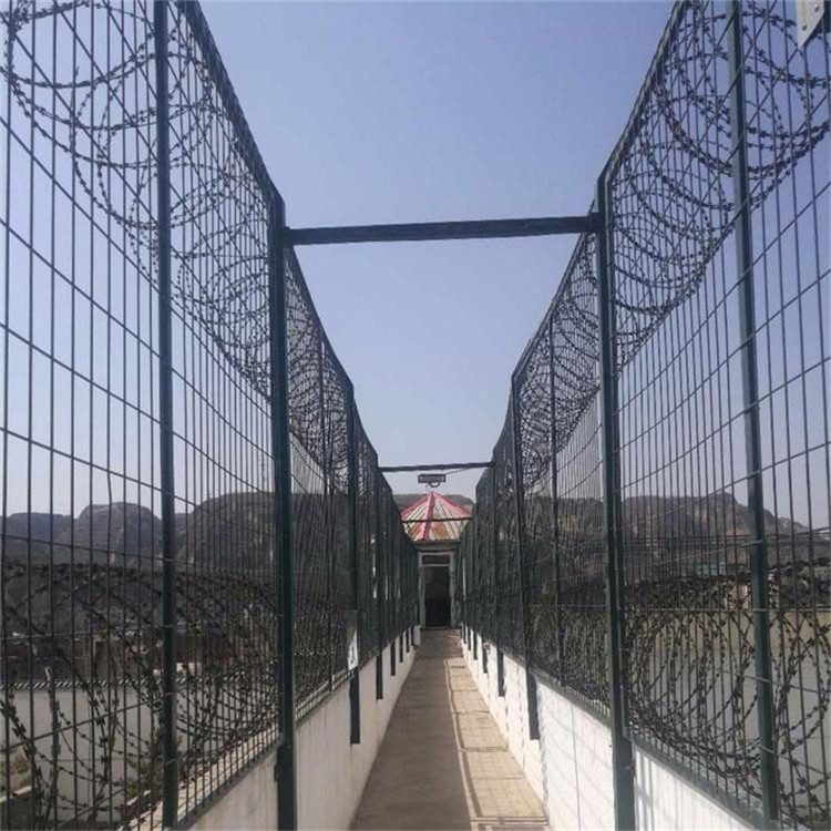 V型支架加裝防拆卸刀刺網(wǎng)。刀刺網(wǎng)的直徑一般為500mm、600mm、800mm,材質(zhì)均為優(yōu)質(zhì)304不銹鋼,鎳含量8個(gè)以上。刺網(wǎng)芯線直徑為2.5mm、片長(zhǎng)22mm,刀片寬度15mm ,刀片厚度0.5mm。蛇腹形刀刺網(wǎng)的排列密度不小于16圈/米,相鄰每圈間距不大于120mm。監(jiān)獄用的刀刺網(wǎng)通常卡扣之間的距離是120mm ,直徑500mm的刀刺網(wǎng),覆蓋-米的重量約為1公斤監(jiān)獄鋼網(wǎng)墻也分為很多類一般為正方形孔和長(zhǎng)方形孔,一般有焊接網(wǎng)片型鋼板圍網(wǎng)型,還有焊接型刀片刺網(wǎng)和358密紋網(wǎng),還有造價(jià)較高的梅花刺片鋼網(wǎng)墻,每個(gè)監(jiān)獄地區(qū)防御系統(tǒng)不一樣,如有圖紙可根據(jù)圖紙直接進(jìn)行報(bào)價(jià),沒(méi)有圖紙我們也會(huì)各地區(qū)監(jiān)獄不用,推薦各地區(qū)合適監(jiān)獄鋼網(wǎng)墻,如想詳細(xì)了解,可持續(xù)關(guān)注我哦
