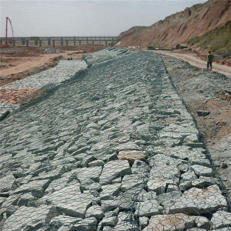 綠濱墊是由機(jī)編雙絞合六邊形金屬網(wǎng)面構(gòu)成箱型網(wǎng)籠,厚度在0.15-0.3m(含0.3m),并由間隔1米的隔板分成若干單元格,為了加強(qiáng)綠濱墊結(jié)構(gòu)的強(qiáng)度, 所有的面網(wǎng)板邊端均采用直徑更粗的鋼絲。綠濱墊是一種生態(tài)結(jié)構(gòu),綠濱墊經(jīng)常和固濱籠搭配使用,這樣可以達(dá)到很好的效果。綠濱墊和固濱籠都是由低碳鋼絲編織而成的網(wǎng)箱,它們的抗沖刷能力和防沖擊能力強(qiáng),如果在理想情況下,甚至可以承受的水流速度可達(dá)6m/s,高速水流下,箱籠內(nèi)的松散填充料即使有小的位移,也不會(huì)被洪水帶走,而是經(jīng)過自身的調(diào)節(jié)達(dá)到新的平衡,同時(shí)單元結(jié)構(gòu)之間的連接力也能使其更加牢固。綠濱墊具有抗沖刷能力,網(wǎng)箱內(nèi)填充料的空隙可以粉碎浪花,減小浪壓力,當(dāng)浪退下時(shí)可以破壞真空吸力,加上結(jié)構(gòu)本身進(jìn)行的微調(diào),可確保工程的安全、穩(wěn)定。