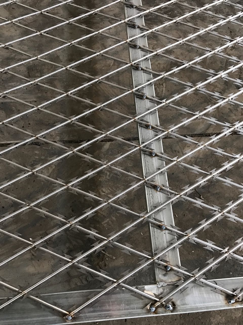 是由刀片刺繩直條焊接而成的,是根據(jù)電焊網(wǎng)片改進而成,主要功能是防盜,防攀爬以及隔離。刀片刺繩網(wǎng)芯線上面有鋒利的刀片,手不能握防護性能好。因為咱們的浸塑的話塑層相對要稍厚一點,這樣會使咱們刀片刺網(wǎng)的刀片變鈍減弱了它的作用,因此不建議使用浸塑的處理方法。