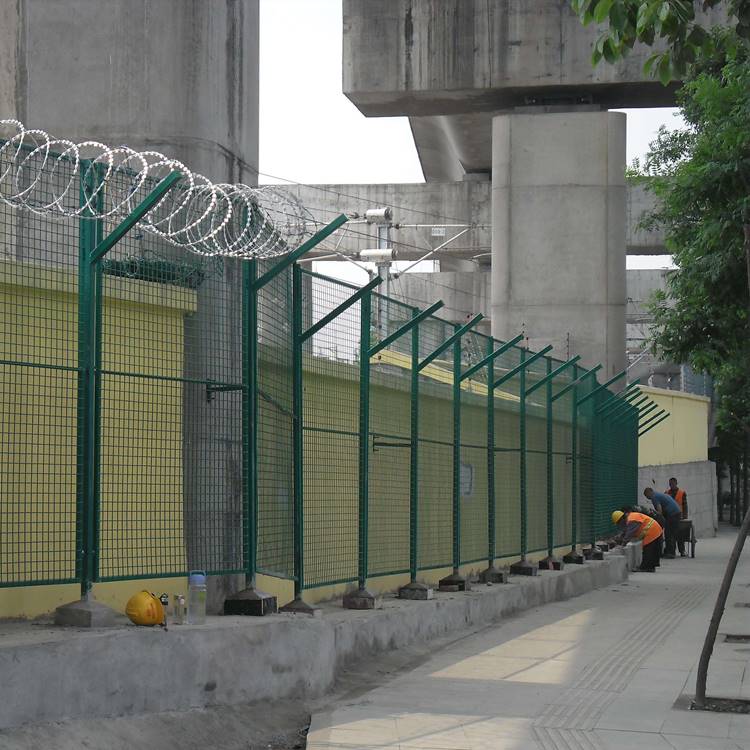 監(jiān)獄鋼網(wǎng)墻又稱Y型安全防御護(hù)網(wǎng),防攀護(hù)欄網(wǎng),用V型支架立拄,加強(qiáng)型焊接片網(wǎng),安全防盜連接件和熱鍍鋅刀片刺籠組成強(qiáng)度和安全防御性級(jí)別很高.