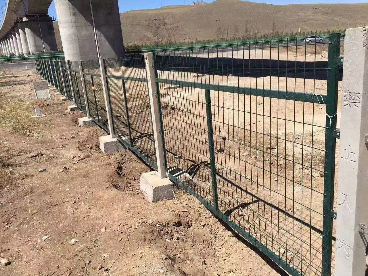 鐵路防護(hù)柵欄主要用于鐵路線路兩旁的封閉以及橋墩下的封閉,邊界的隔離防護(hù)。高速公路隔離、鐵路兩側(cè)封閉、開發(fā)區(qū)圍界、場區(qū)圍網(wǎng)等場所