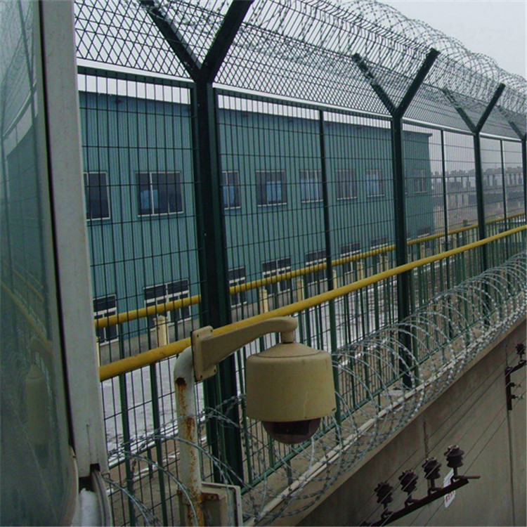 質(zhì),然后在進(jìn)行塑料包裹處理,也就是常說(shuō)的靜電噴涂和浸塑處理。監(jiān)獄隔離網(wǎng)頂部必須安裝防止跨越的蛇腹型刀刺網(wǎng),立柱規(guī)格不得小于