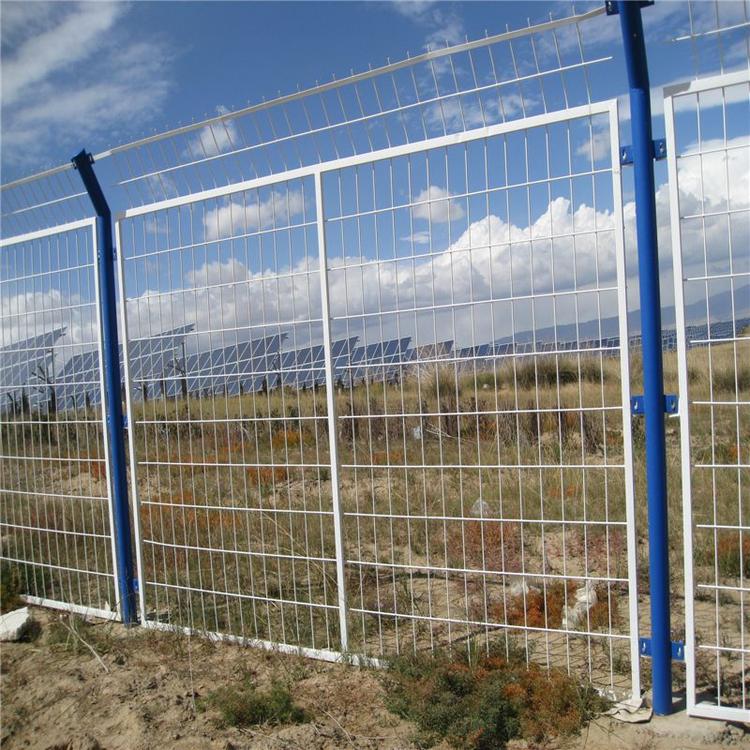 5.圍網(wǎng)網(wǎng)格尺寸170*85,鐵絲直徑浸塑4mm,鋼管直徑50mm,壁厚不小于2mm。外傾防攀爬角度30度。