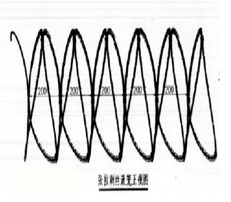 1、鐵路水泥柵欄刺絲滾籠采用刀片剌繩繞圈后相臨兩圈每隔120°用剌絲連接卡固定,張開后形成蛇腹網(wǎng)狀;閉合后刀片剌繩圈徑為50cm,張開后每交叉圈安裝間距20cm,直徑不小于45cm。