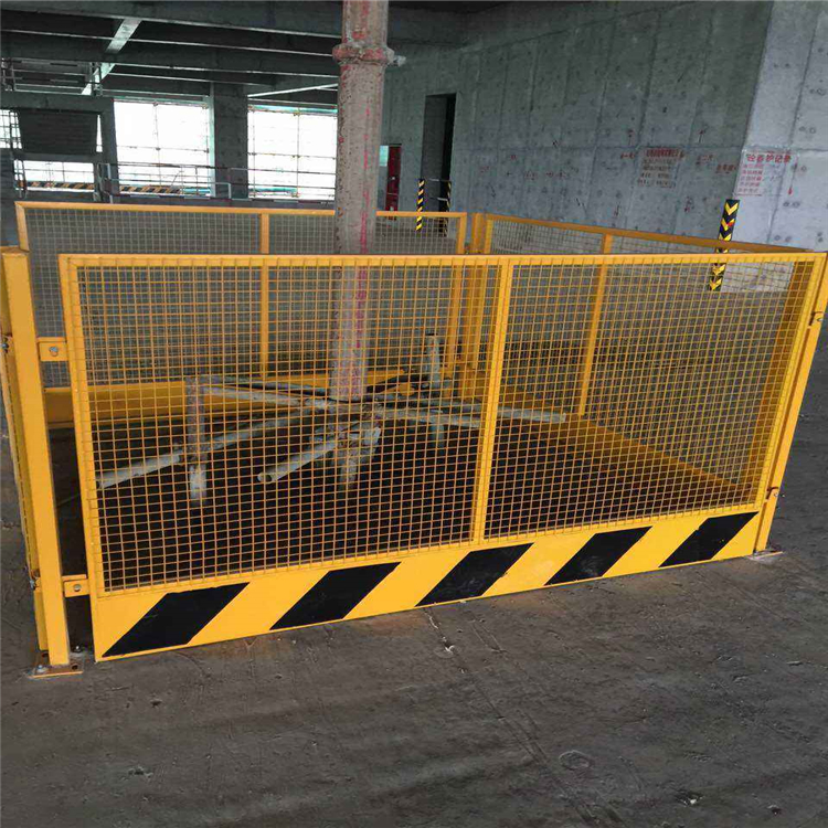 電梯井口防護(hù)網(wǎng)產(chǎn)品規(guī)格∶1.3m*1.5m 1.5m*1.8m 1.2m*1.8m也可按要求定做,采用25x25mm鋼管焊制,也可采用20x20mm30x30m,厚度:1.0--2.5mm ;高度1.2米,下口設(shè)20cm防踢板