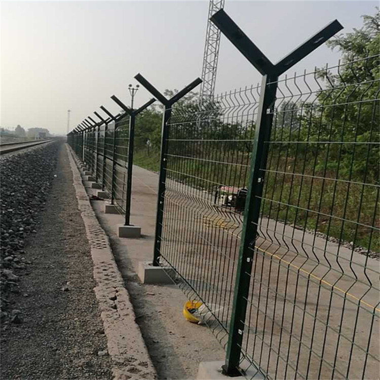 觀,顏色多樣,不僅起到圍欄的作用,還起到美化的作用。Y型機(jī)場圍界網(wǎng)可以電鍍、熱鍍、噴涂、浸塑等防腐形