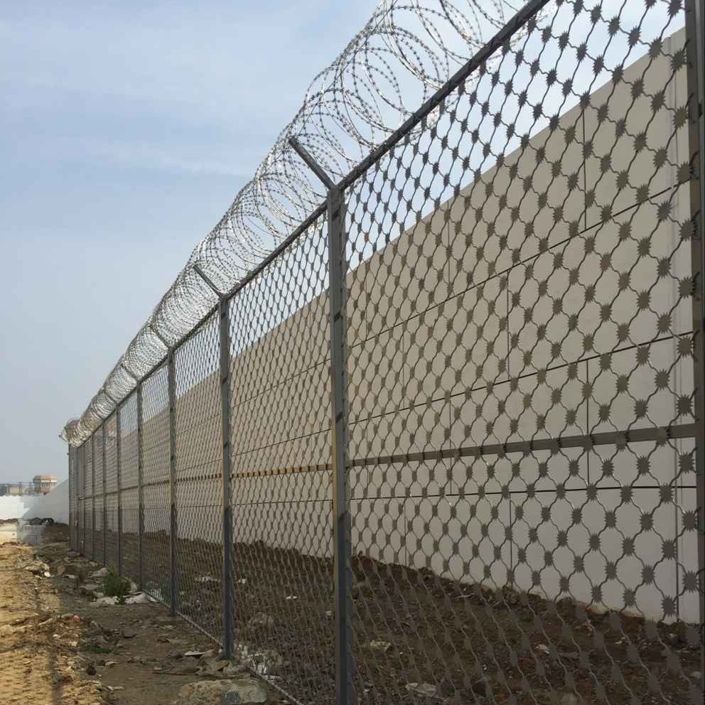 監(jiān)獄隔離網(wǎng)采用電鍍、熱鍍、噴塑、浸塑等防腐形式,具有很好的抗老化、抗曬、耐候等特點。其產(chǎn)品造型美觀、花色多樣,既起到圍欄作用,又起到美化作用。由于具有安全性高、防攀爬能力好,網(wǎng)片連接方式采用特制SBS緊扣件,有效防止人為的破壞性拆卸,橫向四道折彎加強筋,使網(wǎng)面強度顯著增加。
