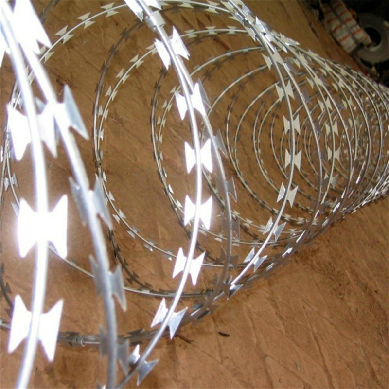 鍍鋅刀片刺網(wǎng)又可分為兩種,一種是全熱鍍刀片刺繩,一種是半熱鍍刀片刺繩,價格只是稍微低于全熱鍍,除非是一次性使用,否則不推薦。電泳的圍墻安全防護刀刺滾網(wǎng)是將做好的刀片刺網(wǎng)再進行噴塑表面處理,使得刀片刺網(wǎng)與外面空氣形成一種具有隔離層的空間。