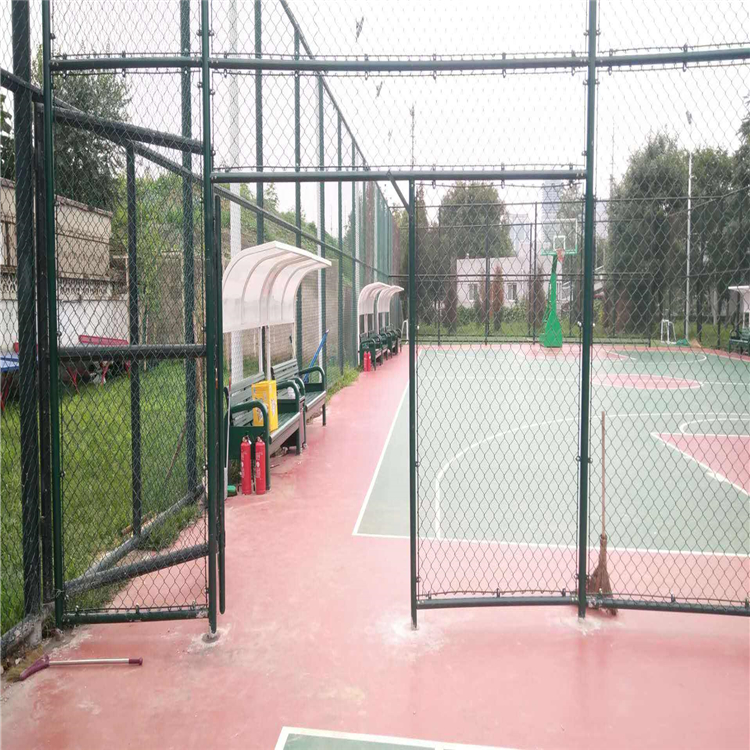 籃球場(chǎng)圍網(wǎng)表面處理:圍網(wǎng)采用PE/PVC包塑絲,立柱、邊框采用噴塑、浸塑處理
