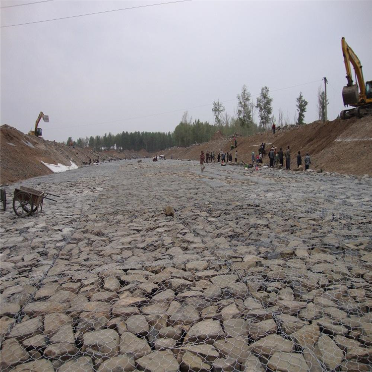 生態(tài)石籠護(hù)坡為一種生態(tài)格網(wǎng)結(jié)構(gòu)形式。采用耐腐蝕、高強(qiáng)度、有延展性的低碳鋼絲或包覆PVC以上的鋼絲,用機(jī)械編織制成石籠,用這種網(wǎng)具制成的箱形結(jié)構(gòu),即生態(tài)石籠護(hù)坡。依據(jù)ASTM和EN標(biāo)準(zhǔn),低碳鋼的直徑要根據(jù)工程設(shè)計(jì)的要求而變化。通常在2.0~4.0mm范圍內(nèi),鋼絲的拉伸強(qiáng)度不低于38kg/m2,金屬涂層重量一般在245g/m2以上,其邊線(xiàn)直徑一般要大于網(wǎng)箱的網(wǎng)板直徑。這種結(jié)構(gòu)可用于邊坡支護(hù),基坑支護(hù),山巖掛網(wǎng)噴漿,邊坡植草(綠化),鐵路高速公路隔離護(hù)網(wǎng)等,還可制成箱籠、網(wǎng)墊,用于江河、堤壩、海塘的防沖蝕保護(hù),以及用于水庫(kù)、河流截流的網(wǎng)箱。溝渠河床、溝渠的建設(shè),涉及邊坡和河床的穩(wěn)定,都選擇了生態(tài)格網(wǎng)結(jié)構(gòu),是百年來(lái)許多天然河流改造和人工渠道開(kāi)挖的主要方法。對(duì)河岸、河床都能起到有效的永久保護(hù)作用,還具有控制水流、防止水流失的作用,尤其在環(huán)境保護(hù)、保持水質(zhì)等方面有極好的效果。在護(hù)坡生態(tài)格網(wǎng)結(jié)構(gòu)應(yīng)用與河流護(hù)岸及坡腳保護(hù)方面都是很成功的范例,它充分發(fā)揮了生態(tài)格網(wǎng)的優(yōu)勢(shì),達(dá)到了其它方法無(wú)法達(dá)到的理想效果。生態(tài)石籠護(hù)坡工程是將格網(wǎng)拼裝成箱籠,再加塊石等填料制成護(hù)岸新工藝,按結(jié)構(gòu)形式可分為擋墻、護(hù)坡、護(hù)底、護(hù)腳、水下拋石等。由金屬絲組成的格網(wǎng)防護(hù)體,具有一定的抗拉強(qiáng)度,不易被拉斷,填料之間充滿(mǎn)了空隙,具有一定的變形適應(yīng)性。由于基礎(chǔ)條件改變,如發(fā)生不均勻沉降、地震等,箱籠不能將箱內(nèi)填料沖出箱籠外,而能自行調(diào)節(jié),形成新的平衡;又由于箱籠系柔性結(jié)構(gòu),所以防護(hù)工程表面有可能發(fā)生小的變化,但不會(huì)出現(xiàn)開(kāi)裂、網(wǎng)箱被拉斷等現(xiàn)象,造成護(hù)欄損壞。