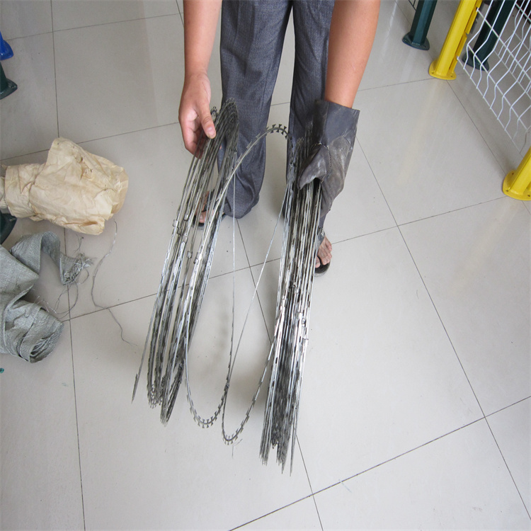 刀片刺網(wǎng)又名刀片刺繩,是一種發(fā)展起來的防護(hù)、隔離能力較強(qiáng)的新型防護(hù)產(chǎn)品。