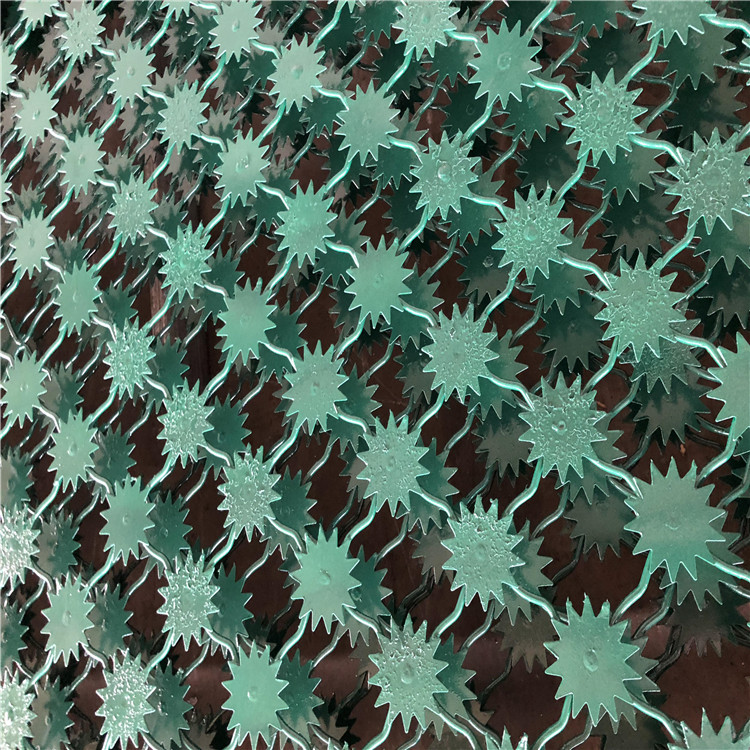 梅花刺鋼網(wǎng)墻表面墨綠色噴涂、也常用銀灰色噴涂、高端大氣、既起到防腐防銹的作用、又有裝飾的效果。
