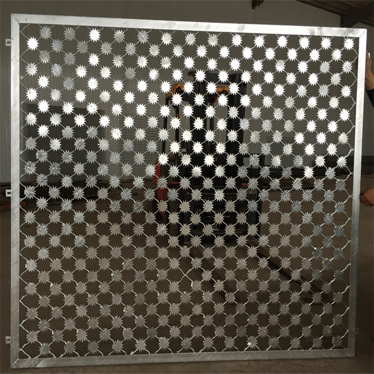 梅花刺鋼網(wǎng)墻是由V型支架立柱;加強型焊接片網(wǎng),安全防盜連接件和熱鍍鋅刀片刺籠組成強度和安全防御性級別很高。用途:近年來,被廣泛應(yīng)用在監(jiān)獄,看守所、軍事基地等高安全場所。