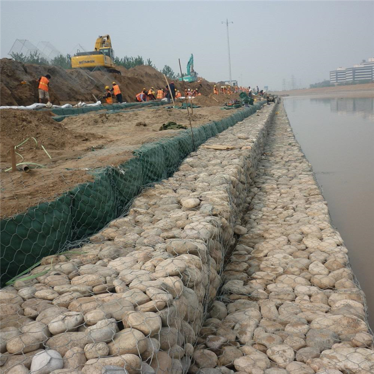 鐵絲石籠網(wǎng)是工程技術(shù)人員為了實(shí)現(xiàn)工程與生態(tài)環(huán)境相結(jié)合而研究出來(lái)的一種新型防護(hù)結(jié)構(gòu),高強(qiáng)度鍍鋅鐵絲編制的不同大小的矩形籠子,裝滿石塊應(yīng)用到景觀工程和水利工程的岸坡防護(hù)后,它的柔性結(jié)構(gòu)特點(diǎn)可人為設(shè)計(jì)搭建成和周圍圍環(huán)境相結(jié)合的形象景觀,例如石籠階梯,石籠墻等,隨著我國(guó)越來(lái)越重視生態(tài)自然綠色環(huán)境,熱鍍鋅石籠網(wǎng)的滲透性特點(diǎn),既可起到凈化水的作用,石籠內(nèi)石塊間的縫隙也可人為和自然因素的雙重作用下充填泥土和自然草本種子,經(jīng)過(guò)灑水和天然雨水、河水的滋潤(rùn),植物種子逐漸在石塊之間的泥土中生根發(fā)芽,茁壯生長(zhǎng),根系牢牢固定石塊和泥土。如此即可以對(duì)邊坡實(shí)現(xiàn)防護(hù)和綠化的目的,改善生態(tài)、保持水土的效果也十分顯著。