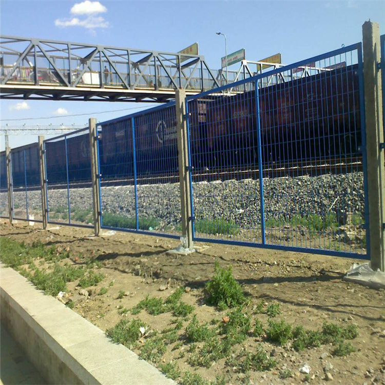 鐵路防護(hù)柵欄主要分鍍鋅防護(hù)柵欄、浸塑防護(hù)柵欄倆大種類,是以立柱加網(wǎng)片連接而成。選用優(yōu)質(zhì)低碳鋼絲焊接。不僅外觀大方,美觀,而且牢固,防腐性好。主要適用于鐵路兩旁及邊界的隔離防護(hù)及美化。