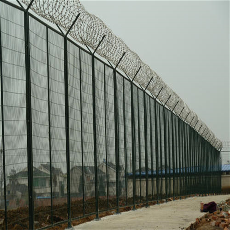 監(jiān)獄防爬鋼圍網(wǎng)V型支架加裝防拆卸刀刺網(wǎng)。刀刺網(wǎng)的直徑一般為500mm、600mm、800mm,材質(zhì)均為優(yōu)質(zhì)304不銹鋼,鎳含量8個以上。刺網(wǎng)芯線直徑為2.5mm、刀片長22mm,刀片寬度15mm,刀片厚度0.5mm。蛇腹形刀刺網(wǎng)的排列密度不小于16圈/米,相鄰每圈間距不大于120mm。監(jiān)獄用的刀刺網(wǎng)通常卡扣之間的距離是120mm,直徑500mm的刀刺網(wǎng),覆蓋一米的重量約為2.38公斤(其他直徑的覆蓋長度可以詳細詢問安平縣艾瑞金屬絲網(wǎng)有限公司業(yè)務部,向您詳細解答)。