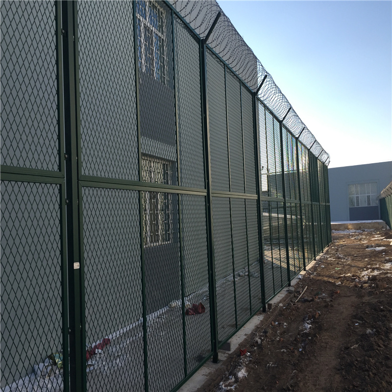 監(jiān)獄巡邏道鋼網(wǎng)墻V型頂端安裝刀片刺網(wǎng),直徑采用50cm-60cm刀片刺網(wǎng)主要是由熱鍍鋅鋼板或不銹鋼薄板沖壓而成的,它擁有尖銳的刀片,高張力鍍鋅鋼絲或者不銹鋼絲做芯線組合而成的產(chǎn)品。使得犯人無力翻越監(jiān)獄巡邏道鋼網(wǎng)墻。我們艾瑞金屬擁有豐富的產(chǎn)品生產(chǎn)及設(shè)計經(jīng)驗,為許多的監(jiān)獄和看守所生產(chǎn)過產(chǎn)品,我們的產(chǎn)品贏得了廣大新老客戶的一致好評,歡迎來廠或來電咨詢產(chǎn)品。