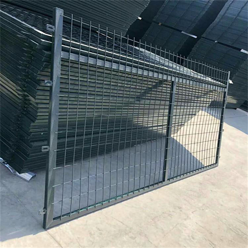 鐵路兩側(cè)防護柵欄為冷拔鋼絲點焊熱浸塑網(wǎng)片,外型尺寸為2760*1790mm,網(wǎng)格尺寸為75*150mm,鋼絲為φ4mm , 網(wǎng)片邊框采用20*30*1.5mm的方管焊接而成,網(wǎng)片連接片由40*40*4mm鋼片制作,防盜螺栓的螺柱、螺帽、墊圈等作熱鍍鋅處理。鐵路兩側(cè)防護柵欄網(wǎng)片表面采用熱浸塑處理,顏色為墨綠色,整個結(jié)構(gòu)表面平整光滑,色澤均勻,無漏鍍、開裂、脫皮及脫落等缺陷。網(wǎng)片浸塑所用的材料及PE表層環(huán)保性好,無污染。