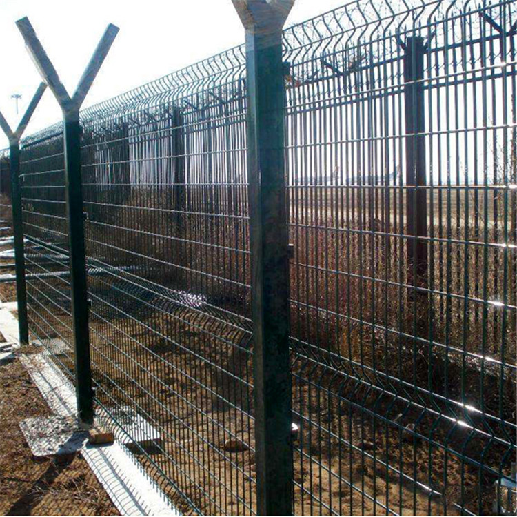 特點(diǎn):如果在機(jī)場(chǎng)護(hù)欄網(wǎng)頂部加裝刀片刺絲、刀片刺繩后又很好的增強(qiáng)了安全防護(hù)性能。采用電鍍、熱鍍、噴塑、浸塑等防腐形式,具有很好的抗老化、抗曬、耐候等特點(diǎn)。其產(chǎn)品造型美觀、花色多樣,既起到圍欄作用,又起到美化作用。由于具有安全性高、防攀爬能力好,網(wǎng)片連接方式采用特制SBS緊扣件,有效防止人為的破壞性拆卸,橫向四道折彎加強(qiáng)筋,使網(wǎng)面強(qiáng)度顯著增加。