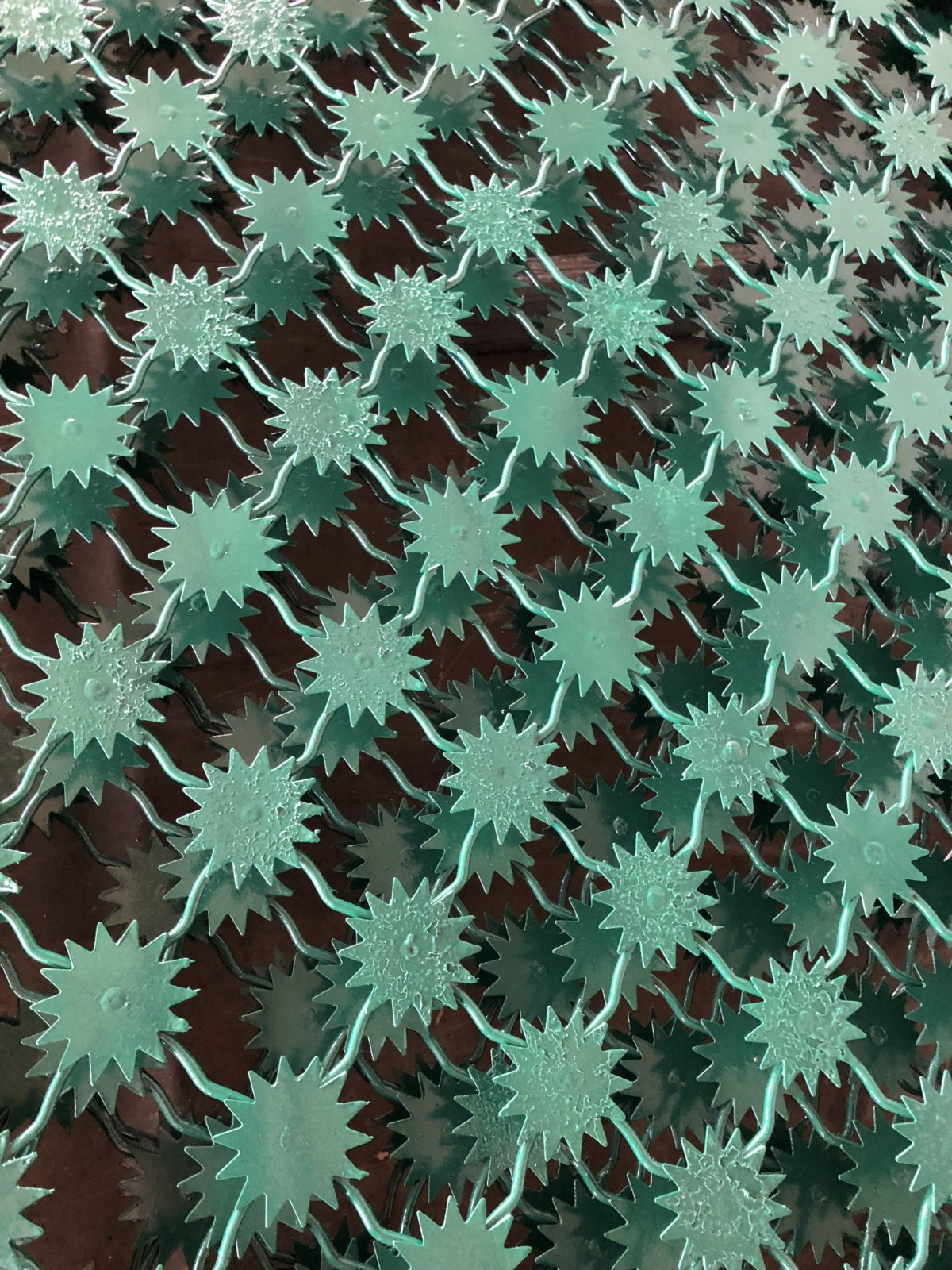 刀刺滾籠:304不銹鋼刀片刺繩,圈徑60公分,每米10圈單圈。太陽花鋼網(wǎng)墻也可以整體熱鍍鋅材料+墨綠色噴塑處理。