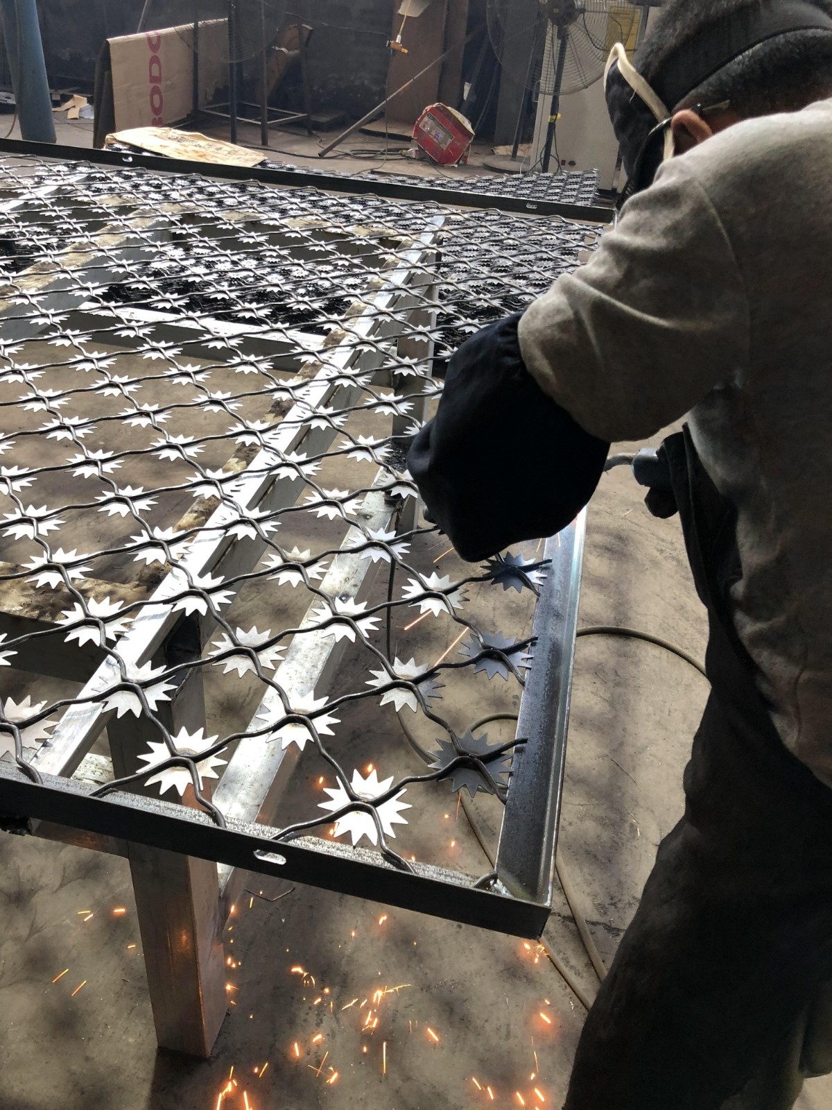 監(jiān)獄梅花刺片隔離網(wǎng)為單層梅花刺片網(wǎng),直徑不小于7.5cm,刺片厚1.5mm,采用Q235低碳鋼板沖壓成型。網(wǎng)片為菱形網(wǎng)孔,網(wǎng)格尺寸;120mm*110mm(高*寬),網(wǎng)絲直徑8mm,采用S195線材高壓焊接,每一個焊點附焊梅花刺一個。