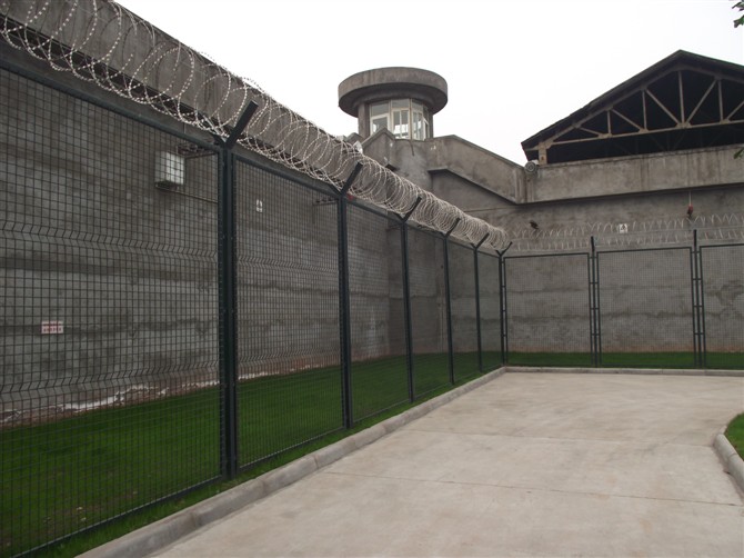 接下來普及一下監(jiān)獄鍍鋅鋼網(wǎng)墻的一般標(biāo)準(zhǔn),網(wǎng)片及V型網(wǎng)的網(wǎng)孔其相鄰橫絲間距不得大于10cm,豎絲間距不得大于5cm,網(wǎng)片與立柱之間的縫隙不得大于2mm,網(wǎng)片離地間距不得大于2cm。焊接網(wǎng)片的鋼絲直徑必須大于等于5mm。立柱應(yīng)采用60*60mm方管制成,管壁厚度不得低于2mm,立柱及網(wǎng)片的表面防腐年限不能低于8年。監(jiān)獄隔離網(wǎng)具有防攀爬、抗沖擊、抗剪切特性和良好的震懾作用,專用于監(jiān)獄看守所、警戒線軍事基地等場所。