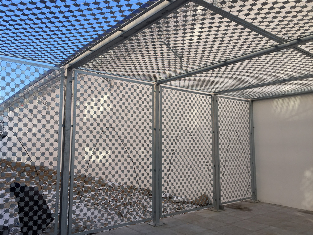 刀刺是由不銹鋼板或鍍鋅板沖壓出尖銳的菱形刀片,再配合高強度的優(yōu)質(zhì)碳鋼絲,在其外觀上給與震懾,達到防翻越的目的。