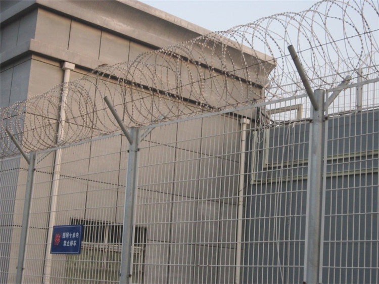 司法機構(gòu):在司法領域,304不銹鋼刀刺網(wǎng)由于其防攀爬和難以逾越的特性,常用于監(jiān)獄、看守所等地的內(nèi)外墻地面及高墻之上,形成一道高不可攀、難以逾越的隔離障礙,配合高壓電網(wǎng)、監(jiān)控報警設備等,確保這些機構(gòu)的安全。