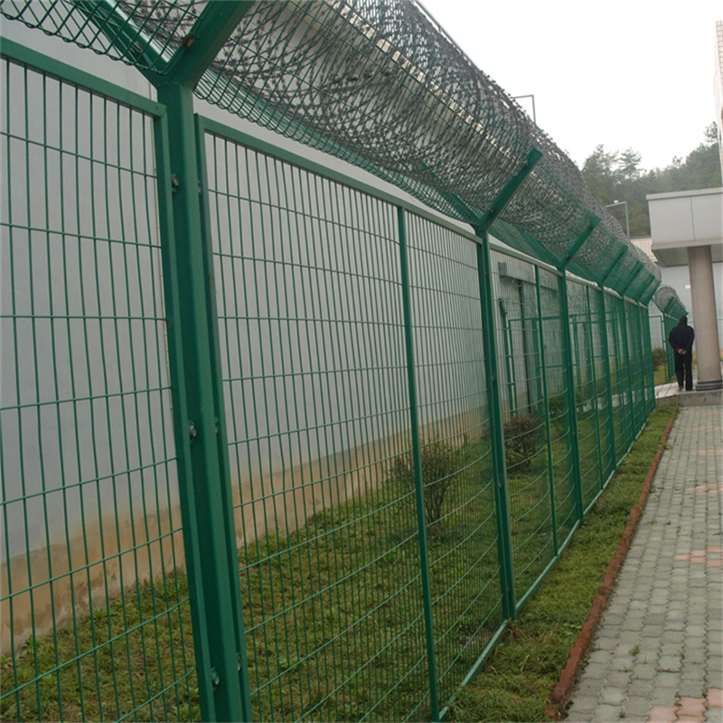 監(jiān)獄金屬隔離柵,主要是采用高強度的刀片刺網(wǎng)與普通防護網(wǎng)的結合,由V型支架立拄,加強型焊接片網(wǎng),安全防盜連接件和刀片刺網(wǎng)組成。刀片刺網(wǎng)是一種新型隔離網(wǎng),由銳利尖角鍍鋅鋼板或不銹鋼薄板做刀片,鋼絲做芯線組合而成的防護器材。監(jiān)獄金屬隔離柵加刀片刺網(wǎng)具有嚇阻、防翻越等效果,材質(zhì)堅硬,高強度,高張力,造型設計獨特,不宜觸摸,因而能達到極好的防護隔離效果。監(jiān)獄金屬隔離柵還具有施工簡便,經(jīng)濟實用等優(yōu)點。