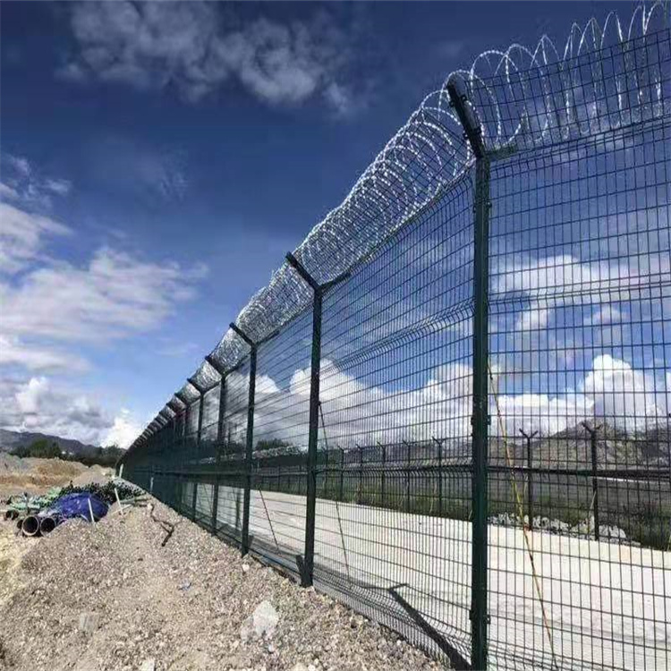 機(jī)場(chǎng)護(hù)欄網(wǎng)又稱作“Y型安全防御護(hù)網(wǎng)”,是由V型支架立柱加強(qiáng)型焊接片網(wǎng),安全防盜連接件和熱鍍鋅刀片刺網(wǎng)組成強(qiáng)度和安全防御性級(jí)別很高。被廣泛應(yīng)用在機(jī)場(chǎng),基地等高安全場(chǎng)所。