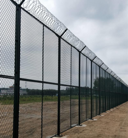 3、監(jiān)獄鋼網(wǎng)墻立柱需做調(diào)直處理,每20米校正,每100米偏差角度不大于5° ,隔離網(wǎng)安裝整體無歪斜, 呈直線。