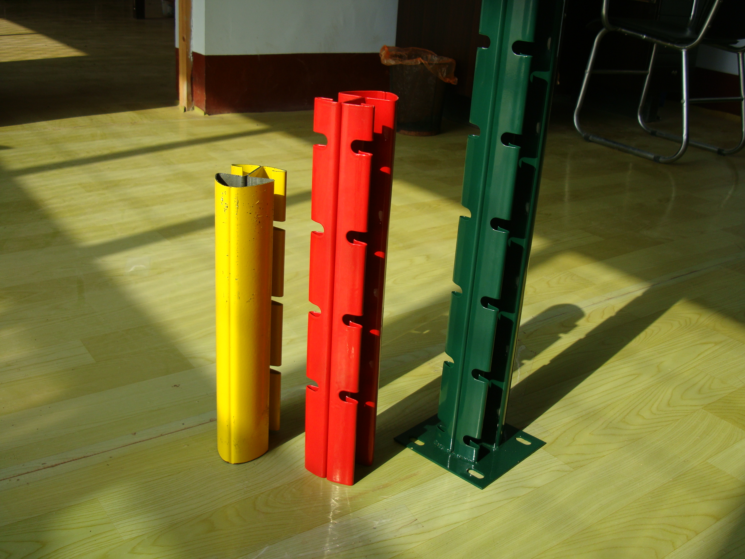 公園桃型柱護(hù)欄一般桃形立柱的板材厚度為1-1.2mm,通過(guò)機(jī)器冷壓、冷彎成型,柱體外側(cè)為橢圓型,內(nèi)側(cè)兩板相接后均各自向外彎制成U型,即為掛鉤部分,為便于桃型立柱與網(wǎng)片的連接,立柱內(nèi)側(cè)根據(jù)網(wǎng)片的網(wǎng)孔尺寸,延立柱長(zhǎng)度方向均勻地設(shè)置N組鉤掛缺口,分布于柱體兩側(cè),掛鉤U型的外部與外側(cè)的橢圓形柱體的直邊相切,有效地防止被撬開(kāi),保證了護(hù)欄的防撬性能桃型柱護(hù)欄網(wǎng)是一種新型產(chǎn)品。