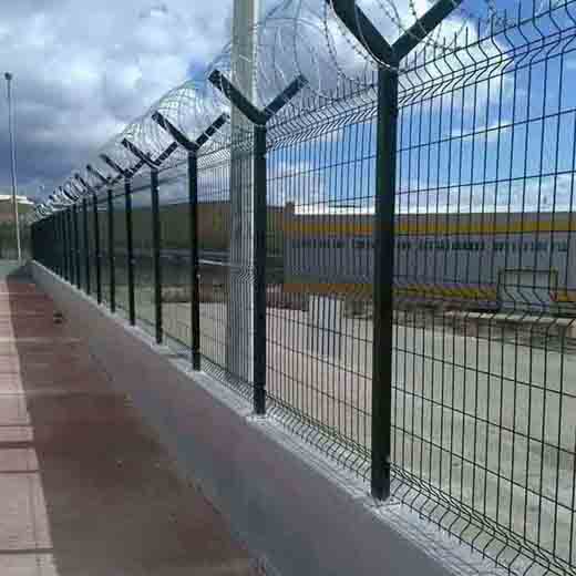 機(jī)場專用護(hù)欄網(wǎng)是由安全防盜連接件和熱鍍鋅刀片刺籠組成的,具有高強(qiáng)度和高安全防御性的隔離柵產(chǎn)品。近年來,機(jī)場圍欄網(wǎng)已被廣泛應(yīng)用于機(jī)場、軍事基地等高安全場所。在機(jī)場圍欄網(wǎng)頂部加裝刀片刺絲、刀片刺繩后,可有效增強(qiáng)安全防護(hù)性能。