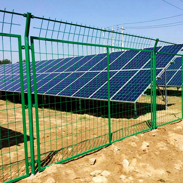 光伏場區(qū)隔離網(wǎng)采用優(yōu)質(zhì)低碳鋼絲作為原材料,表面浸塑具有日久抗腐蝕、抗紫外線不怕雨淋的特點。是專門為光伏電站設(shè)計的防護設(shè)備,主要是用在光伏電站各個區(qū)域的防護和隔離。它有效防止了光伏電場內(nèi)外的人身安全和變電器等設(shè)備的防盜,是電站首選的防護產(chǎn)品。具有較長的使用年限。
