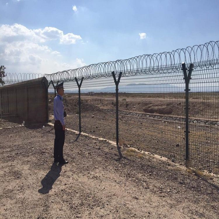 機場隔離網-機場防護網-機場護欄網又稱作“Y型安全防御護網”,是由V型支架立柱,加強型焊接網,安全防盜連接件和熱鍍鋅刀片刺籠組成強度和安全防御性級別很高。