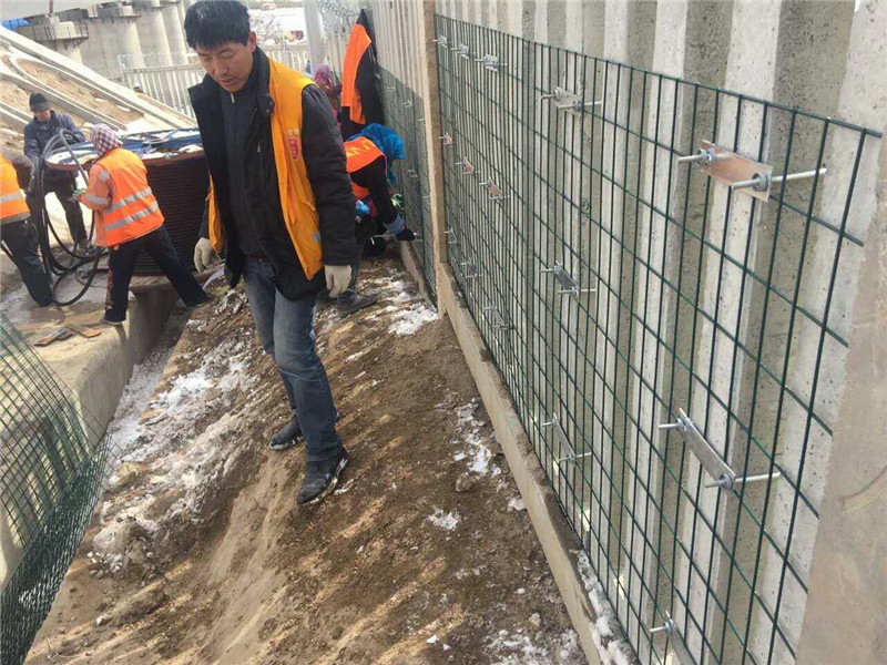 1、高度1m,網(wǎng)孔5*5cm,網(wǎng)絲3.0cm;加密網(wǎng)表面處理或浸塑,鋅鋁涂層不低于200g/㎡;鋅鋁涂層網(wǎng)片適用于混凝土柵欄區(qū)段,浸塑網(wǎng)片適用于浸塑類柵欄地段;
