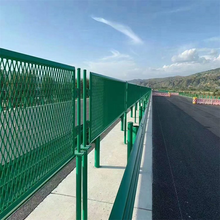 用于高速公路的防眩目網,擴展網隆起的梗部,可有效減輕夜間行車時對方來車的強烈燈光造成的炫目感,使高速公路行車更加舒適安全。鋼板護欄網表面處理多采用熱鍍鋅和噴塑,以增強其表面的抗腐蝕性和美觀性。材料:用鋼板網、異型管、邊耳、圓管焊接成的防眩網。用連接附件與熱鍍管支柱固定。