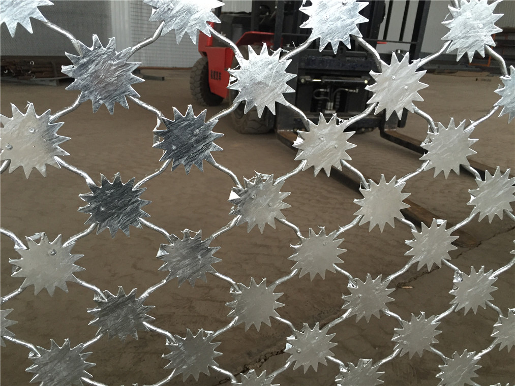 2、監(jiān)獄隔離網(wǎng)浸塑制作流程,將工件進行去除氧化層→水洗→將工件加熱至380攝氏度高溫→將加熱好的工件放入固體粉末槽,粉末經(jīng)過高溫粘附在監(jiān)獄隔離網(wǎng)的表面→*后進入烘烤固化室→成品。優(yōu)點:色彩鮮艷,不易老化,顏色多種選擇,防腐壽命10年以上,缺點:時間久了以后,破損地方容易生銹,維護成本較高。