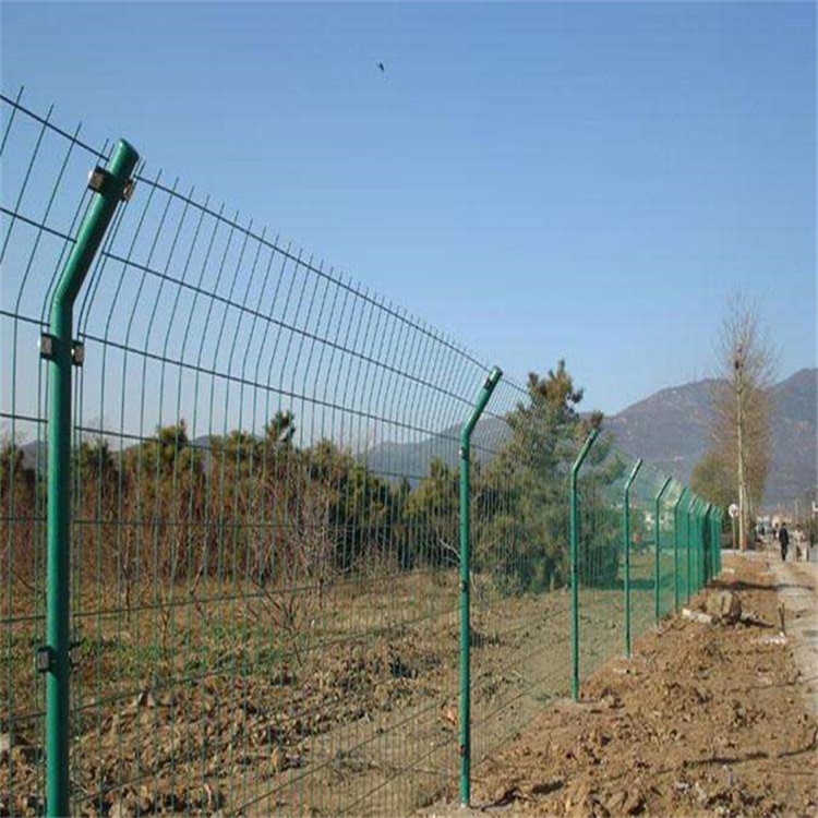 框架護(hù)欄網(wǎng)?:帶邊框的護(hù)欄網(wǎng),增加了其堅(jiān)固度與承受能力,常見于高速公路邊上,多為綠色,頂部有30公分的30°折彎,起到防攀爬作用。
