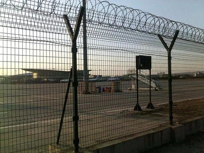 另外,在機(jī)場飛行區(qū)隔離網(wǎng)頂部都會(huì)設(shè)有一個(gè)柱狀的圍欄,其主要目的是未來防止人們的攀爬也是為了保障其他人身安全。這里會(huì)采用些三角折彎性護(hù)欄網(wǎng),在表面設(shè)計(jì)、防腐層、結(jié)實(shí)度方面,都會(huì)有一定的特點(diǎn)。機(jī)場飛行區(qū)隔離網(wǎng)又稱作“機(jī)場護(hù)欄”、“Y型安全防御護(hù)網(wǎng)",它是由V型支架立拄,加強(qiáng)型焊接片網(wǎng),安全防盜連接件和熱鎮(zhèn)鋅刀片刺籠組成。安全防御性級別很高的隔離柵產(chǎn)品。近年來,被廣泛應(yīng)用在機(jī)場,軍事基地等高安全場所。
