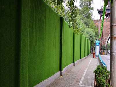 圍擋基腳采用M10水泥砂漿砌筑MU10頁巖磚磚砌0.5*0.5的基礎(chǔ),用于增強(qiáng)圍擋抗風(fēng)穩(wěn)定性;pvc圍擋設(shè)2.5米高,寬3米為一板。施工圍擋做美化處理,噴涂企業(yè)名稱、安全、質(zhì)量、文明施工用語及開發(fā)項(xiàng)目商業(yè)廣告,嚴(yán)禁張貼、涂寫垃圾廣告。