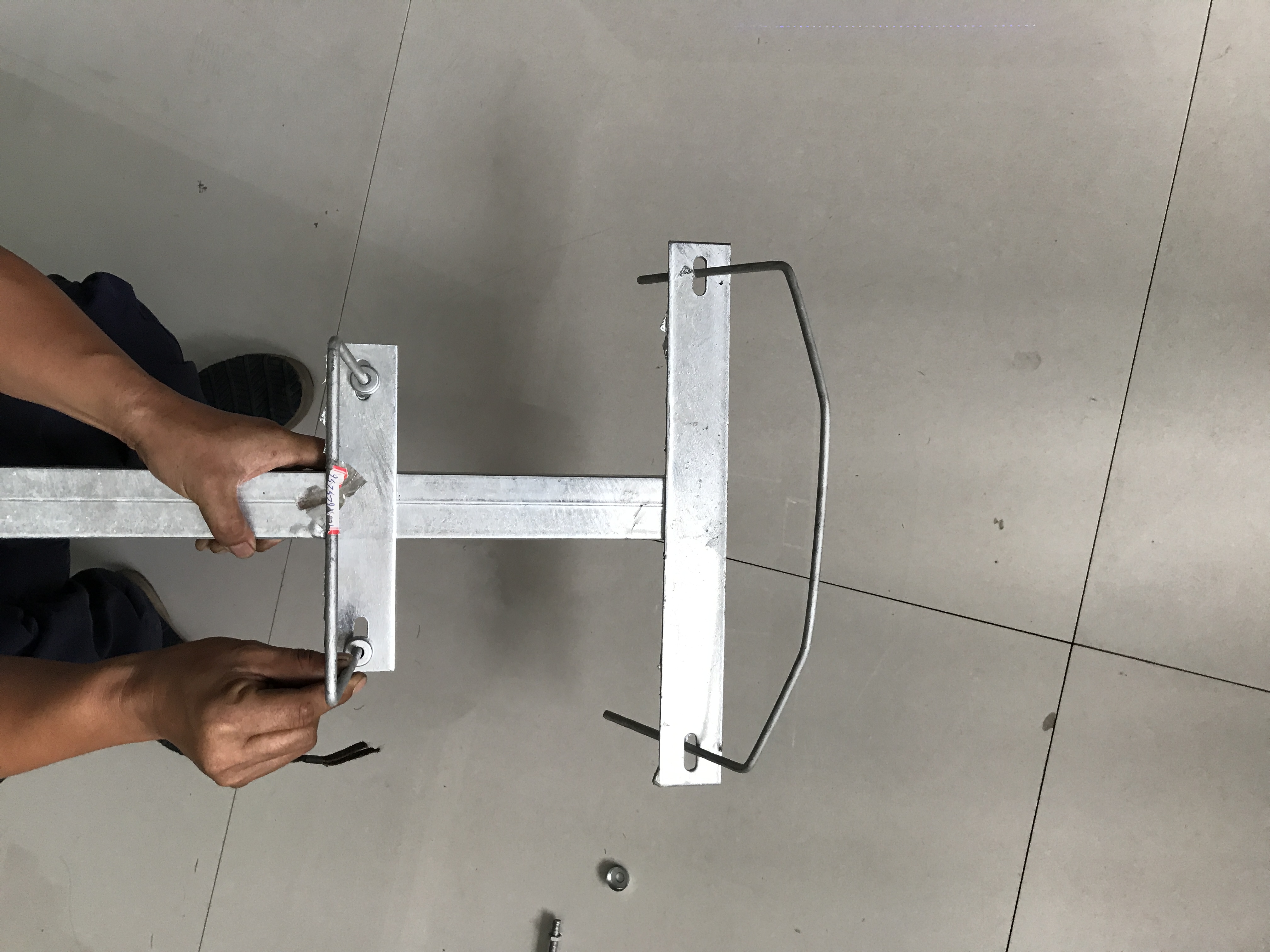 鐵路刺絲滾籠配件規(guī)格參數(shù):整體的形狀是一個(gè)“土”字型支架,立柱支架的豎撐采用50*30mm 壁厚2mm,高730mmQ235矩形鋼管,橫撐是寬50mm厚度4.5mm,長(zhǎng)度分別為246mm和428mm的兩塊Q235扁鐵焊接制作。