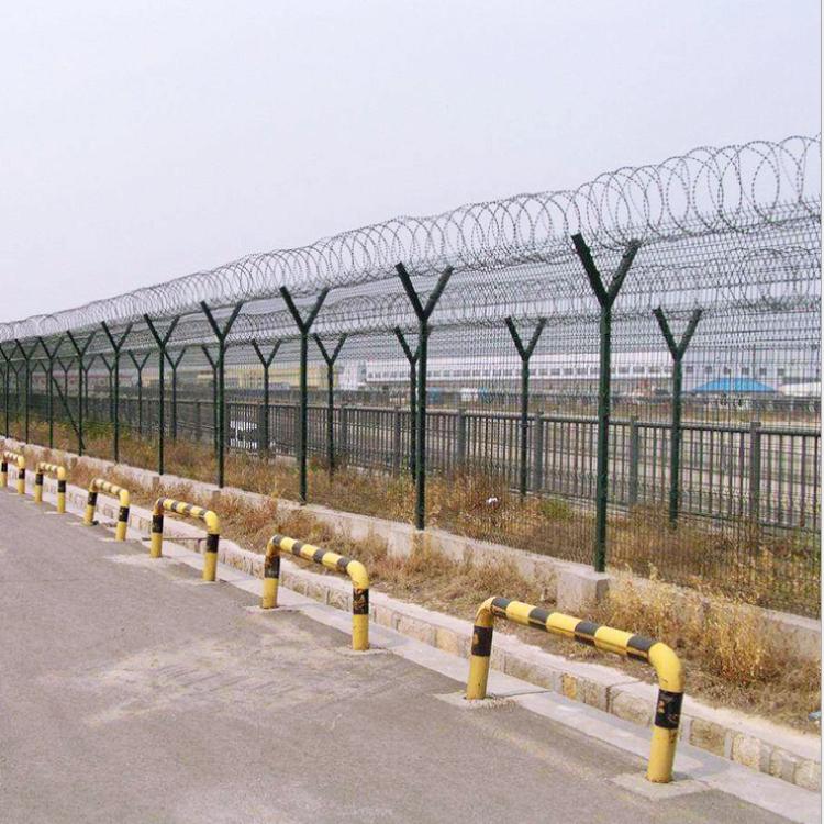 機(jī)場(chǎng)圍界Y型立柱安裝V型圍網(wǎng)加裝蛇腹型刀刺滾籠,會(huì)在機(jī)場(chǎng)外圍形成難以逾越的屏障,保障了機(jī)場(chǎng)各機(jī)組人員的安全。鋼筋網(wǎng)圍界安裝簡(jiǎn)便,施工簡(jiǎn)單,高阻隔,防攀爬成為機(jī)場(chǎng)飛行區(qū)圍界的必備之選。