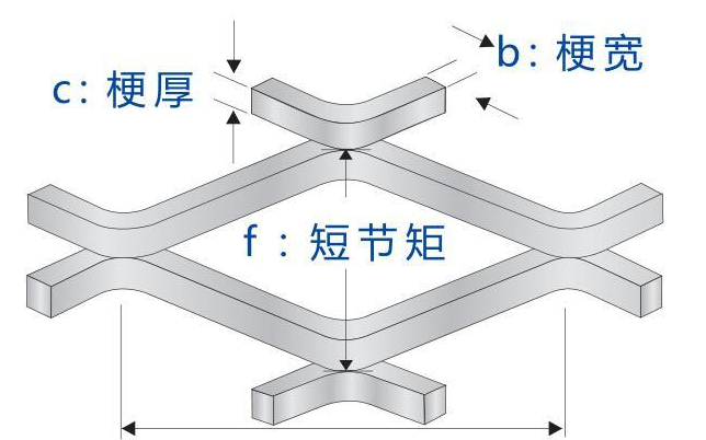 咱們平時看到的焊接網(wǎng)和編織網(wǎng)有絲的直徑(例如絲徑是4mm,說的是鐵絲的直徑是4mm的)而鋼板網(wǎng)就不一樣嘍!不能簡單的用絲徑來表示了,鋼板網(wǎng)不是圓形的不能用直徑來表示,它是由梗寬和梗厚組成的,鋼板網(wǎng)梗寬和梗厚:包括了梗的寬度和梗的厚度,梗寬指鋼板網(wǎng)菱形孔的邊左右量的寬度;鋼板網(wǎng)梗厚就是鋼板網(wǎng)菱形孔的邊上下量的厚度,是兩大必須要掌握的參數(shù)。